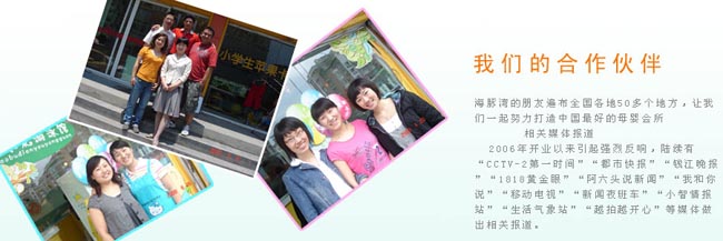 06年杭州第一家兒童專業(yè)理發(fā)服務(wù)機構(gòu)開張營業(yè),經(jīng)過4年的發(fā)展成為杭州嬰幼兒服務(wù)最大最專業(yè)連鎖機構(gòu)之一,迄今為止已經(jīng)在全國各地?fù)碛?0多家合作店,第一家引進(jìn)來自太空的水處理系統(tǒng)--美國中央軟水處理系統(tǒng),第一家引進(jìn)開發(fā)了適合1到6歲寶寶的幼兒游泳項目,第一家擁有正規(guī)游泳師證書的嬰兒游泳館,第一家擁有嬰兒沖浪游泳的游泳館,第一家使用恒溫設(shè)備的游泳館。經(jīng)過幾年的發(fā)展,讓我們更懂得珍惜和感恩,愛孩子像愛自己的寶貝!